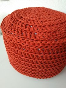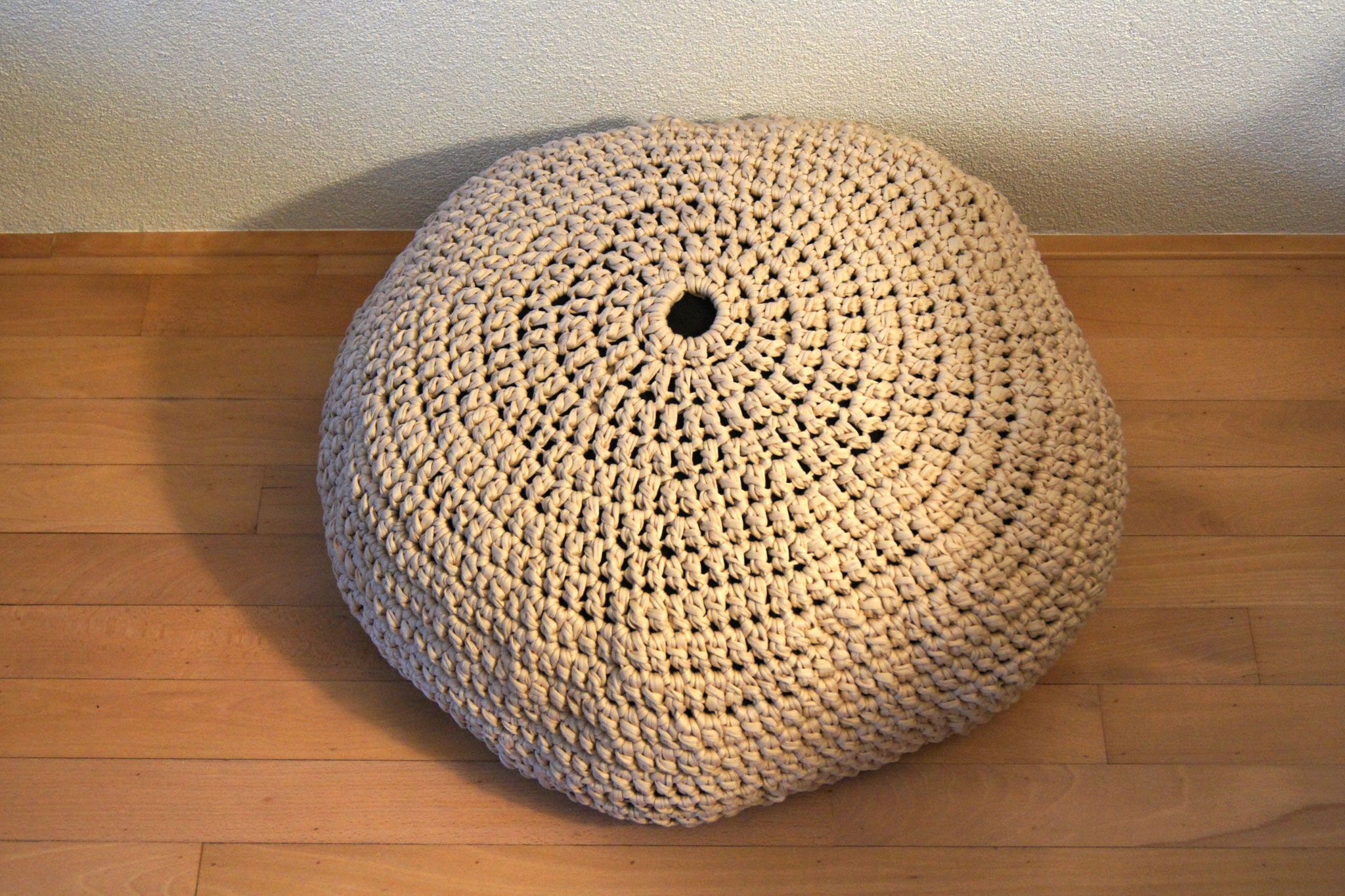 Zelf zo'n poef haken? meer voldoening van je werk kun je niet hebben. Als vulling kun je een oud dekbed of oude gordijnen gebruiken.
