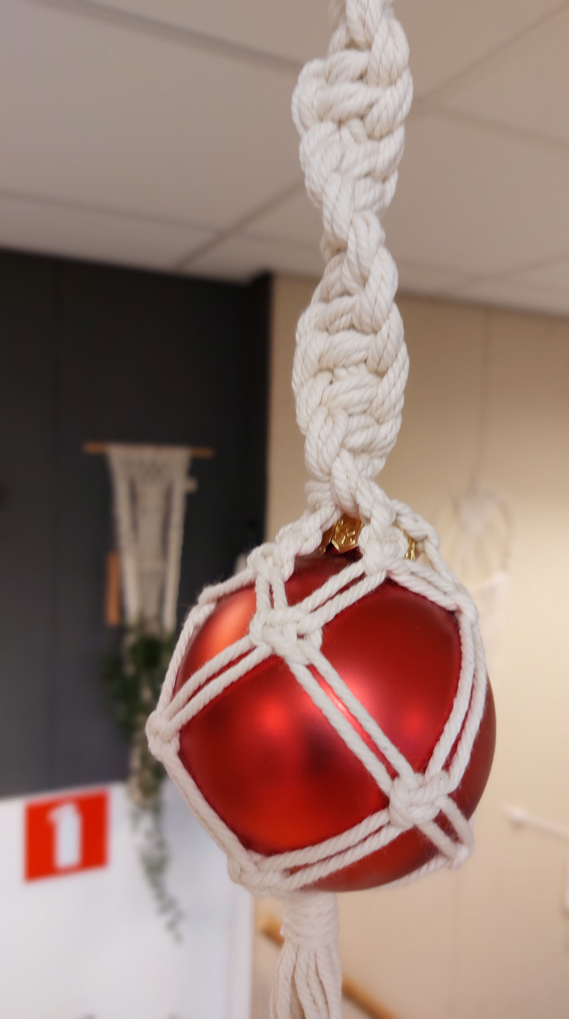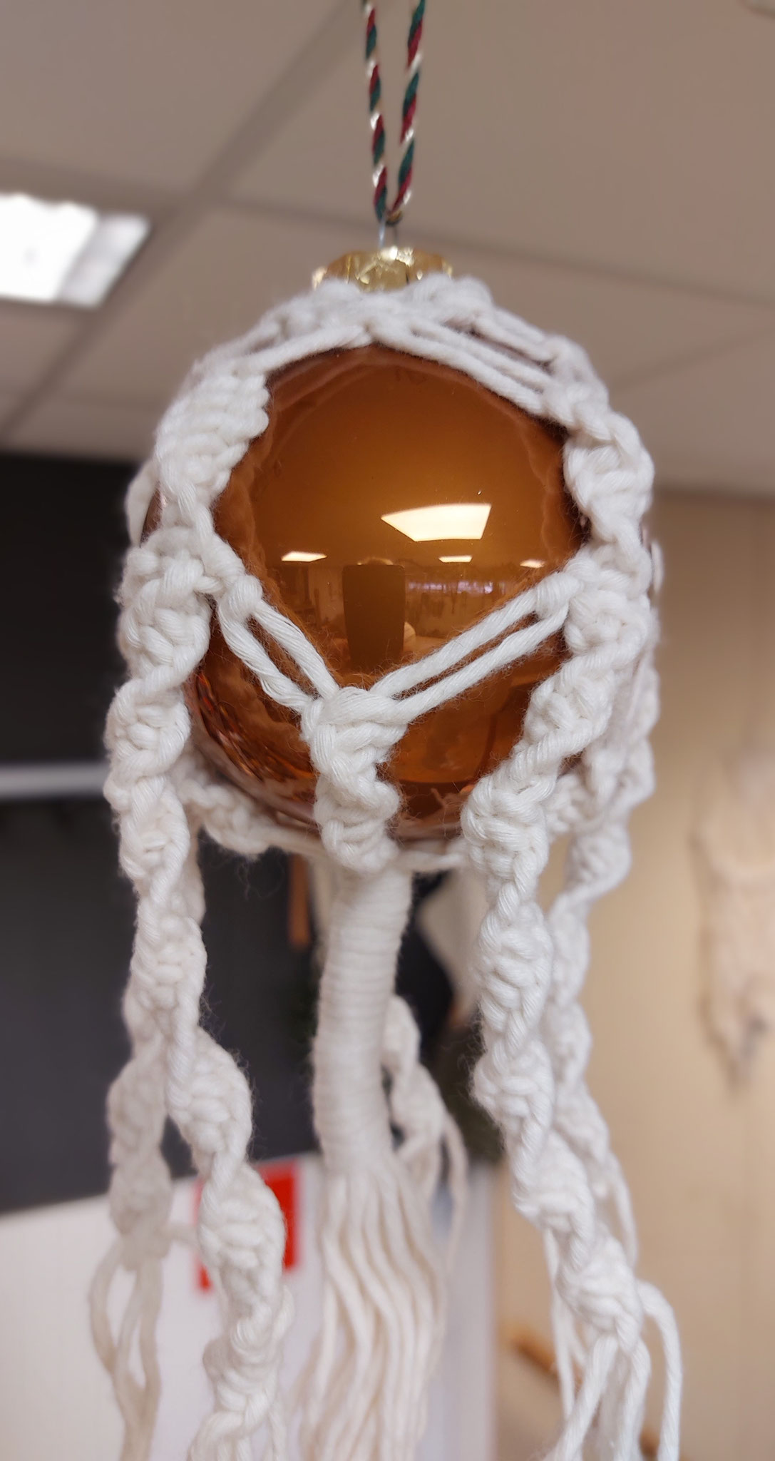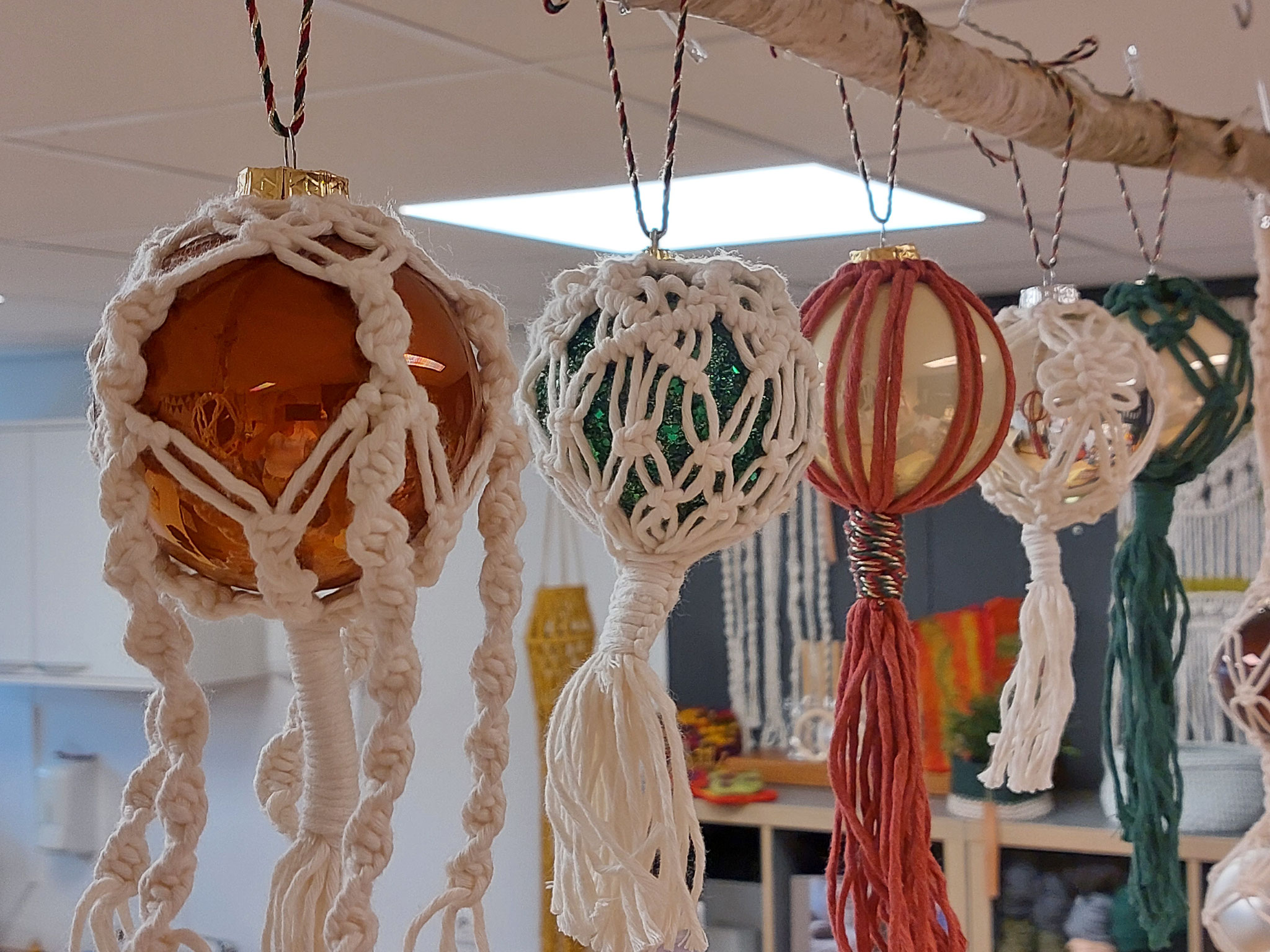 Je gaat om kerstballen heen macrameeën of haken, houd het simpel of varieer met macramé knopen en haaksteken.