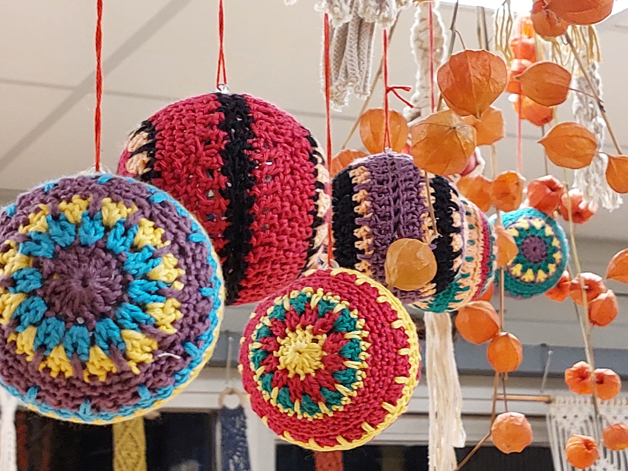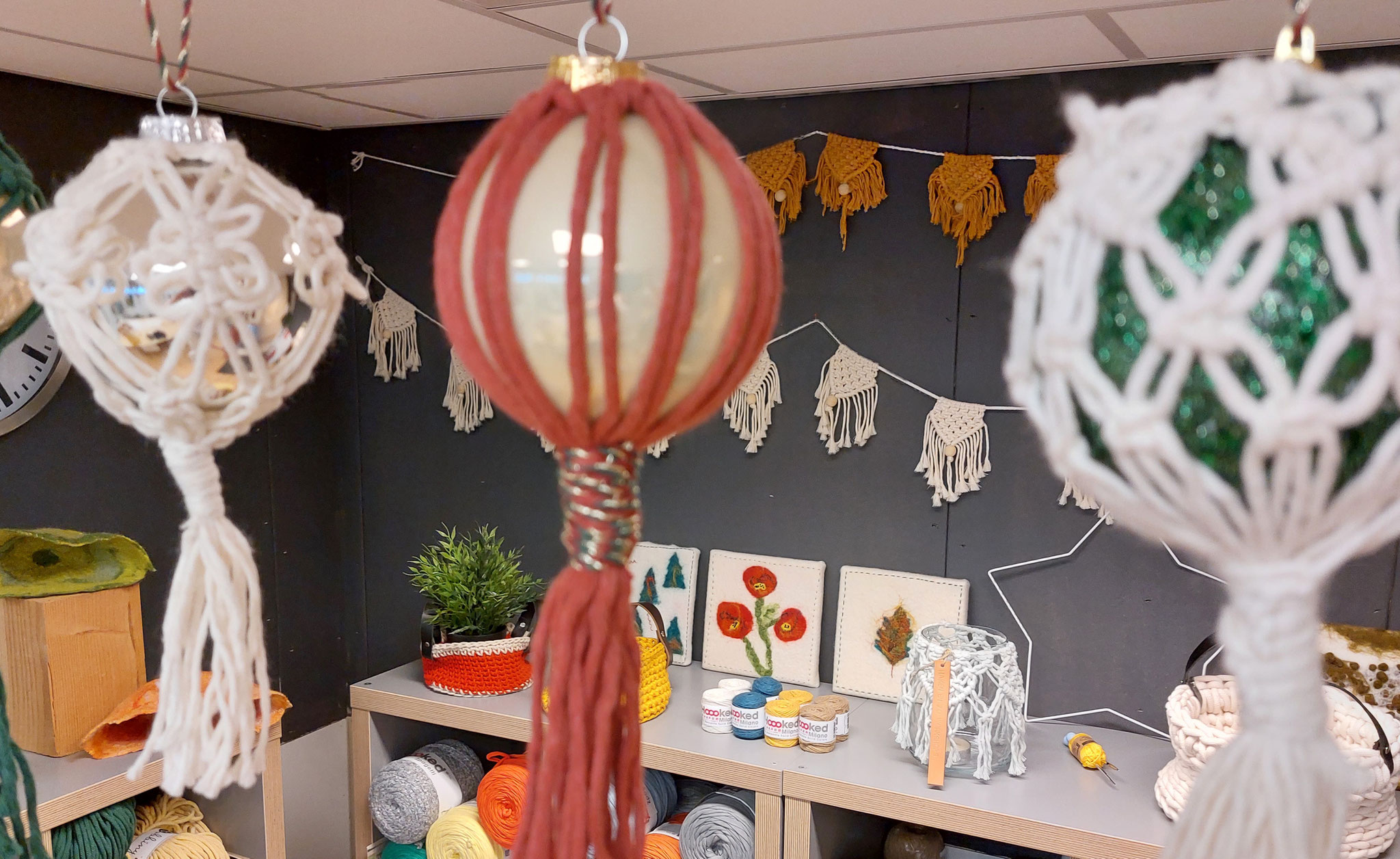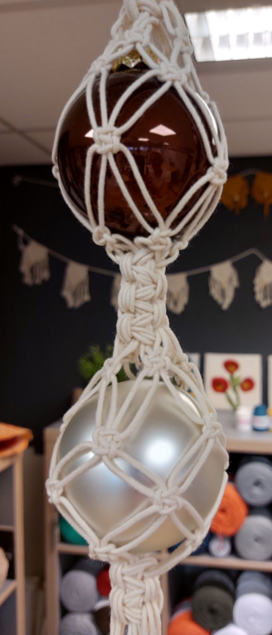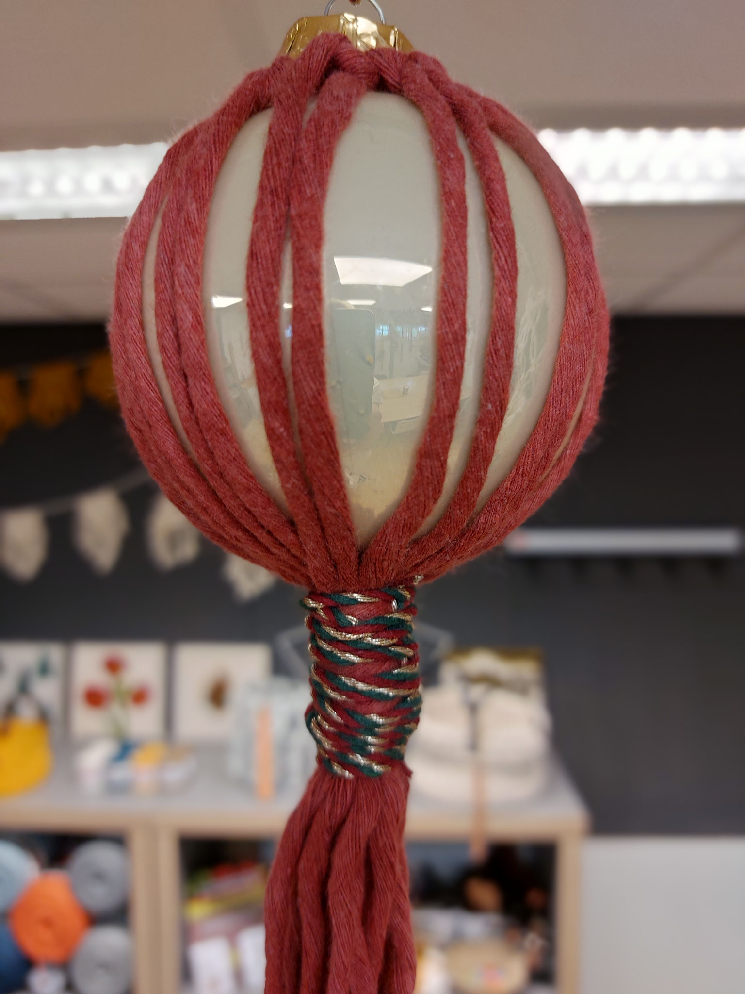 Je gaat om kerstballen heen macrameeën of haken, houd het simpel of varieer met macramé knopen en haaksteken.